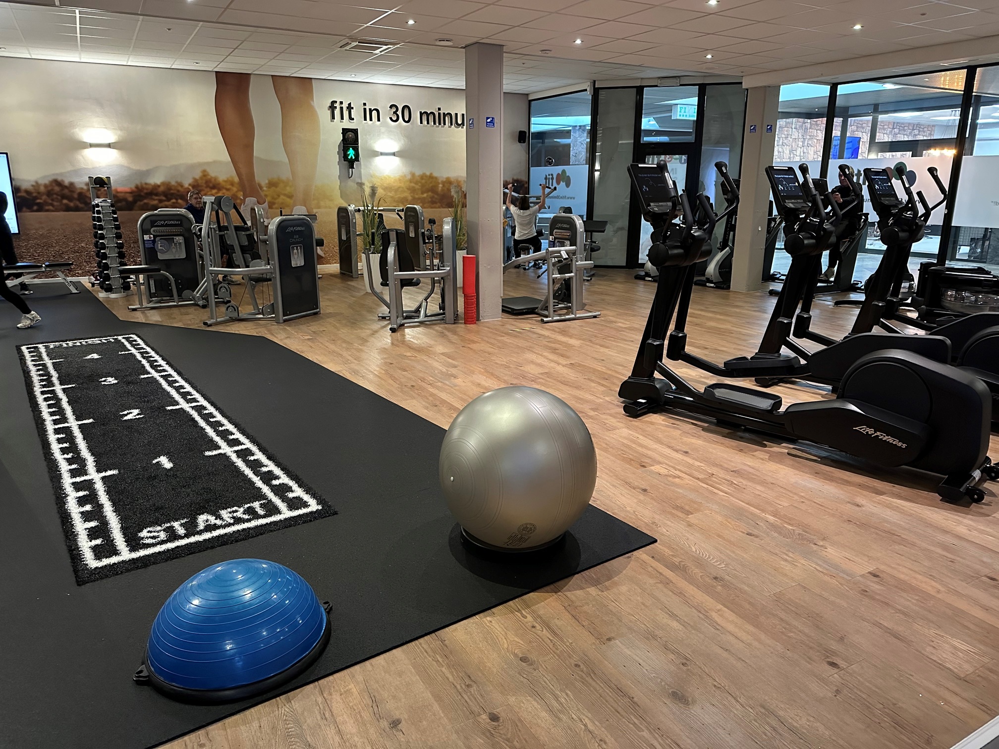 Bij 123 FIT doorloop je een circuit van 13 oefeningen waarbij je zowel conditie als krachttraining combineert. Je begint altijd met de cardio-oefeningen; lopen, roeien en fietsen, waarna je een zeer efficiënt circuit van 10 krachttoestellen doorloopt.